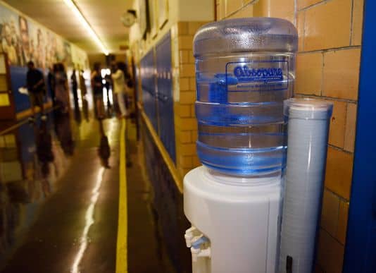DPSCD has been using water stations and bottled water while the district determines a permanent means to deliver safe, clean water to students. (Photo: Clarence Tabb Jr., The Detroit News)