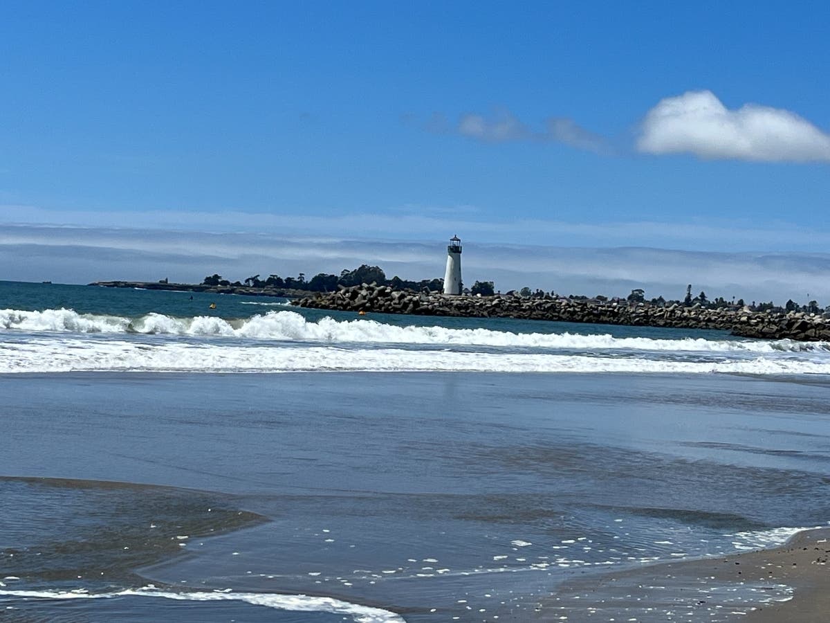 Waves rhythmically come ashore at a Santa Cruz beach near the mouth of the marina, in Santa Cruz, Calif. (Bea Karnes/Patch)