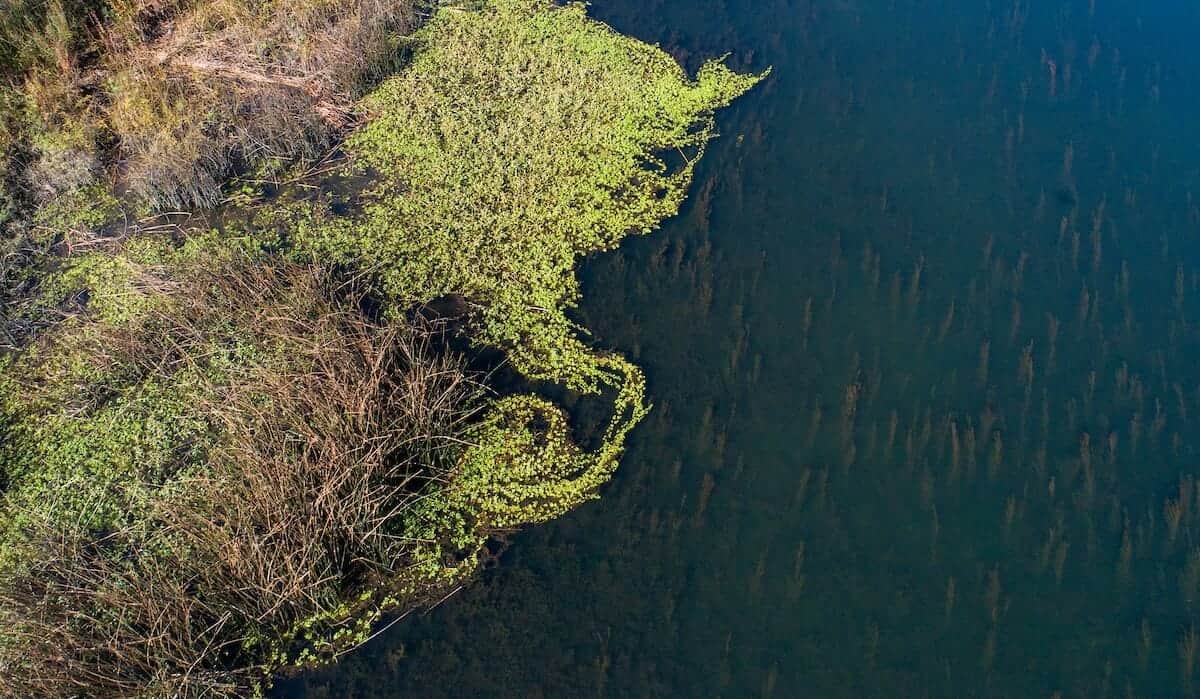 Tule and water hyacinth grow in the habitat surrounding the future location of the Lookout Slough Tidal Restoration Project, is located in the Cache Slough complex within the southern part of the Yolo Bypass in Solano County on October 13, 2020. Approximately 3000 acres of tidal wetlands will be restored through California EcoRestore. The levee will be breached in several places, to create an open water habitat for fish and wildlife in the Sacramento – San Joaquin Delta. California EcoRestore is an initiative to help coordinate and advance at least 30,000 acres of critical habitat restoration in the Sacramento – San Joaquin Delta over the next four years. Florence Low / California Department of Water Resources, FOR EDITORIAL USE ONLY