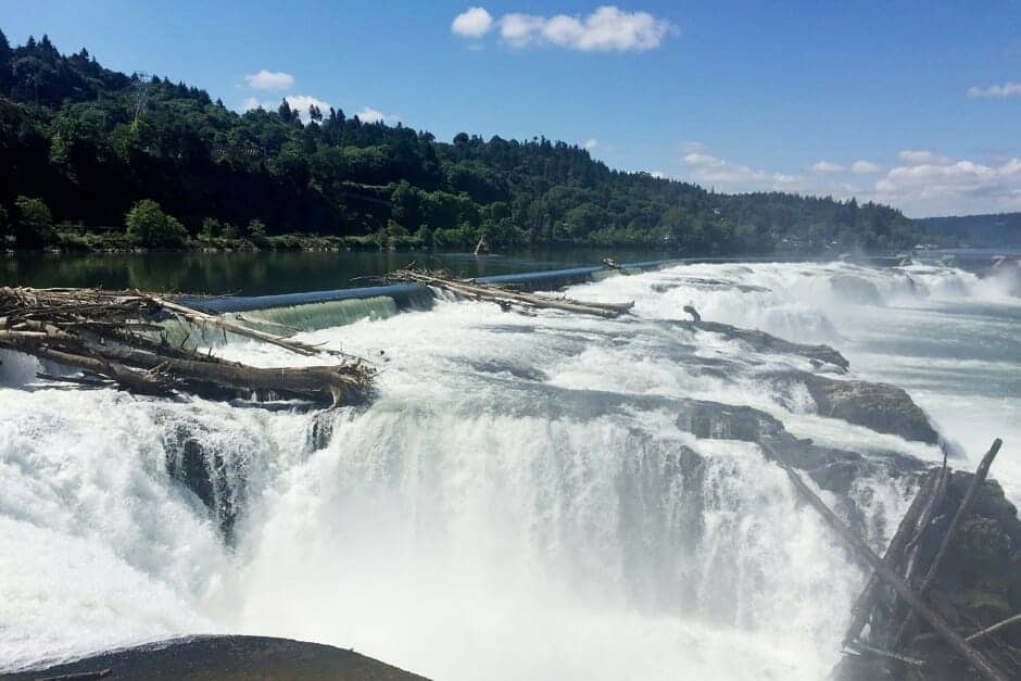 It’s a sunny morning at Willamette Falls in Oregon City, Oregon, and despite being many miles inland, a sea lion is fattening up on a diet of salmon and steelhead. As birds circle overhead, the sound of the horseshoe-shaped falls—carrying rain and Cascade snowmelt from the Willamette River to the Columbia River and the Pacific — is thunderous. “It’s a good day to view the falls,” says Carlotta Collette, a councilor with Metro, the Portland metro area’s regional government, as we stand on a viewing platform that will be part of the future Willamette Falls Riverwalk.