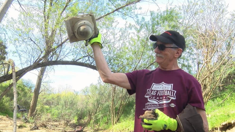 Photo: Volunteer holds up security camera found along river bank. Among the dumpsters full of garbage collected by a team…