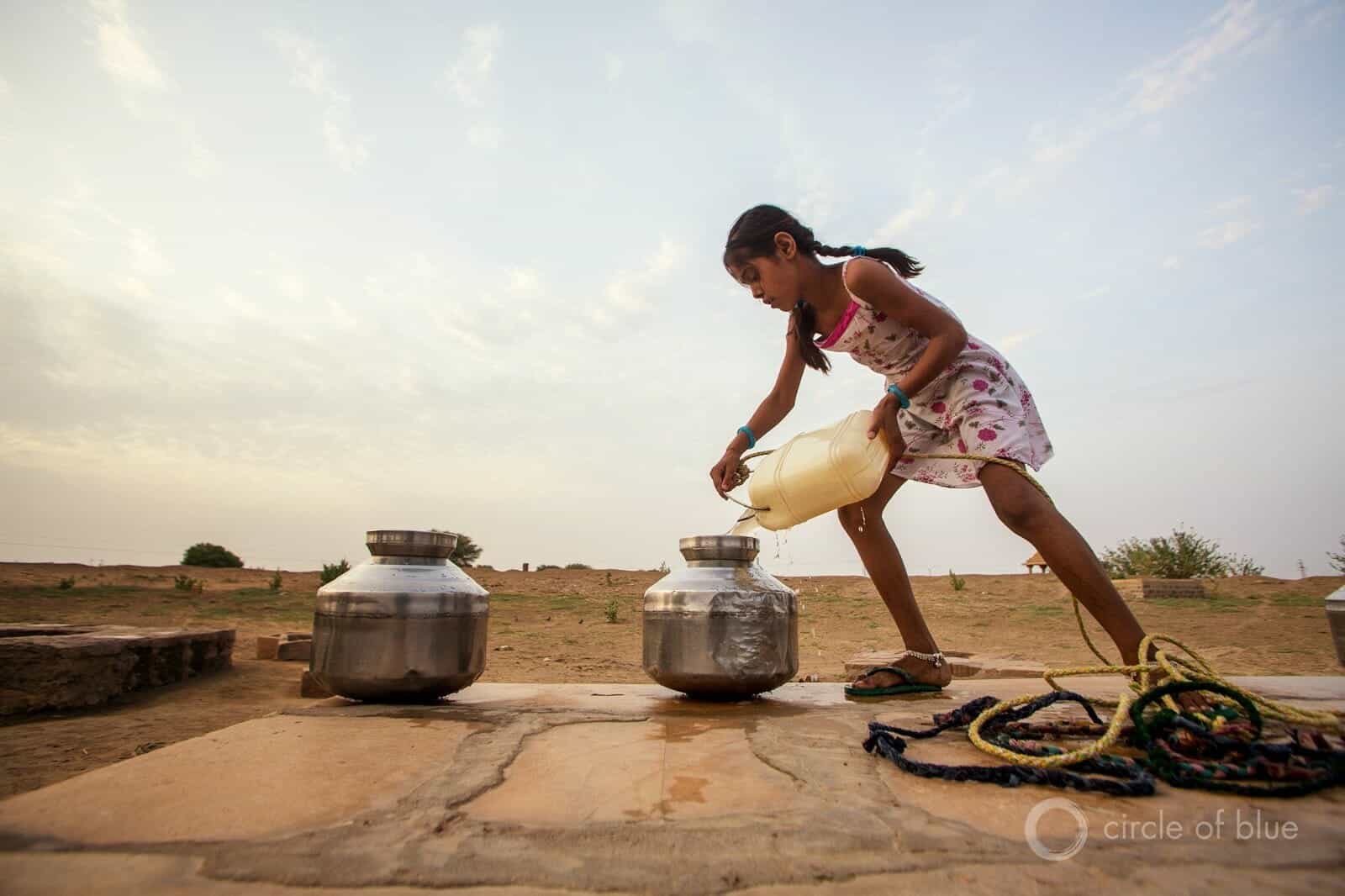 Photo: A girl fills jars with water in Rajasthan, India. Photo © J. Carl Ganter / Circle of Blue