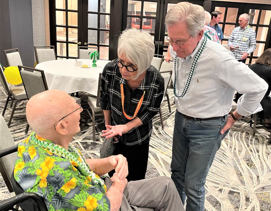 Photo: Turlock’s Jeani and John Ferrari —2021 awardees of the California Farmland Trust’s Dr. Vance Kennedy Award — wish Kennedy well during his 100th birthday celebration in May (Photo contributed).
